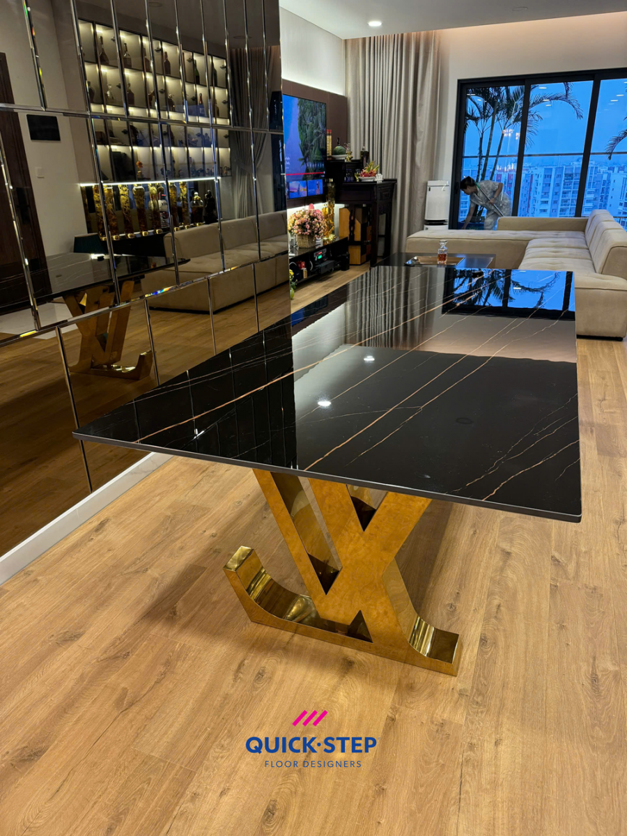 Ngoài khả năng chống ẩm và chống thấm nước, sàn gỗ Quickstep còn có nhiều ưu điểm khác như độ bền cao, khả năng chống trầy xước và chịu lực tốt. Bề mặt sàn được phủ một lớp bảo vệ đặc biệt, giúp chống lại các tác động từ bên ngoài như va đập, trầy xước và phai màu. Lớp phủ này không chỉ bảo vệ sàn khỏi những tác động cơ học mà còn giúp sàn dễ dàng vệ sinh và bảo trì. Sàn gỗ Quickstep cũng có khả năng chịu lực tốt, không bị biến dạng hay lún khi chịu tải trọng lớn. Điều này giúp sàn gỗ Quickstep trở thành một lựa chọn lý tưởng cho các không gian có mật độ đi lại cao như phòng khách, phòng bếp và hành lang. Với những ưu điểm vượt trội này, sàn gỗ Quickstep không chỉ mang lại vẻ đẹp sang trọng cho ngôi nhà của bạn mà còn đảm bảo độ bền và tuổi thọ cao.